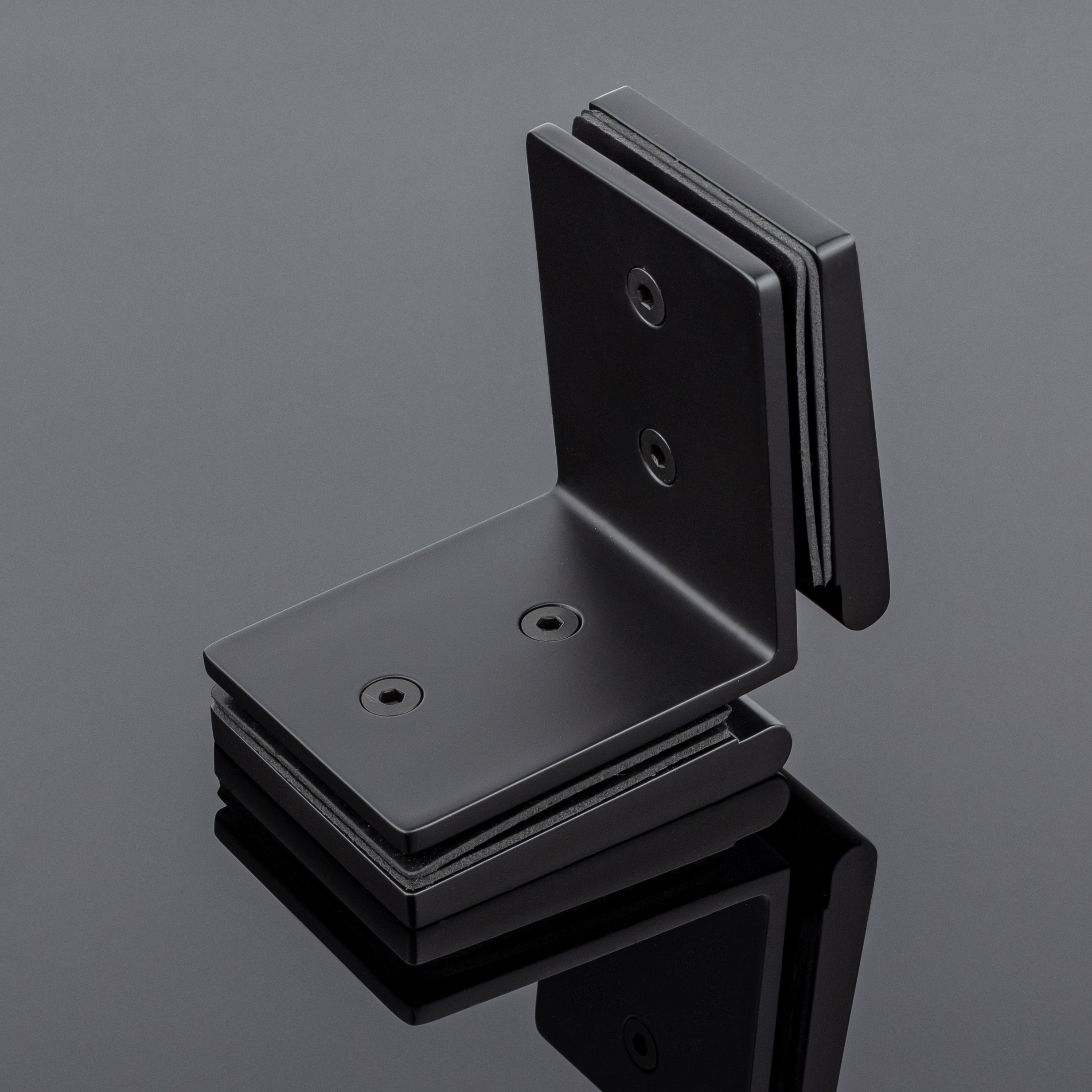 Коннектор стекло-стекло 90°, черный матовый, латунь