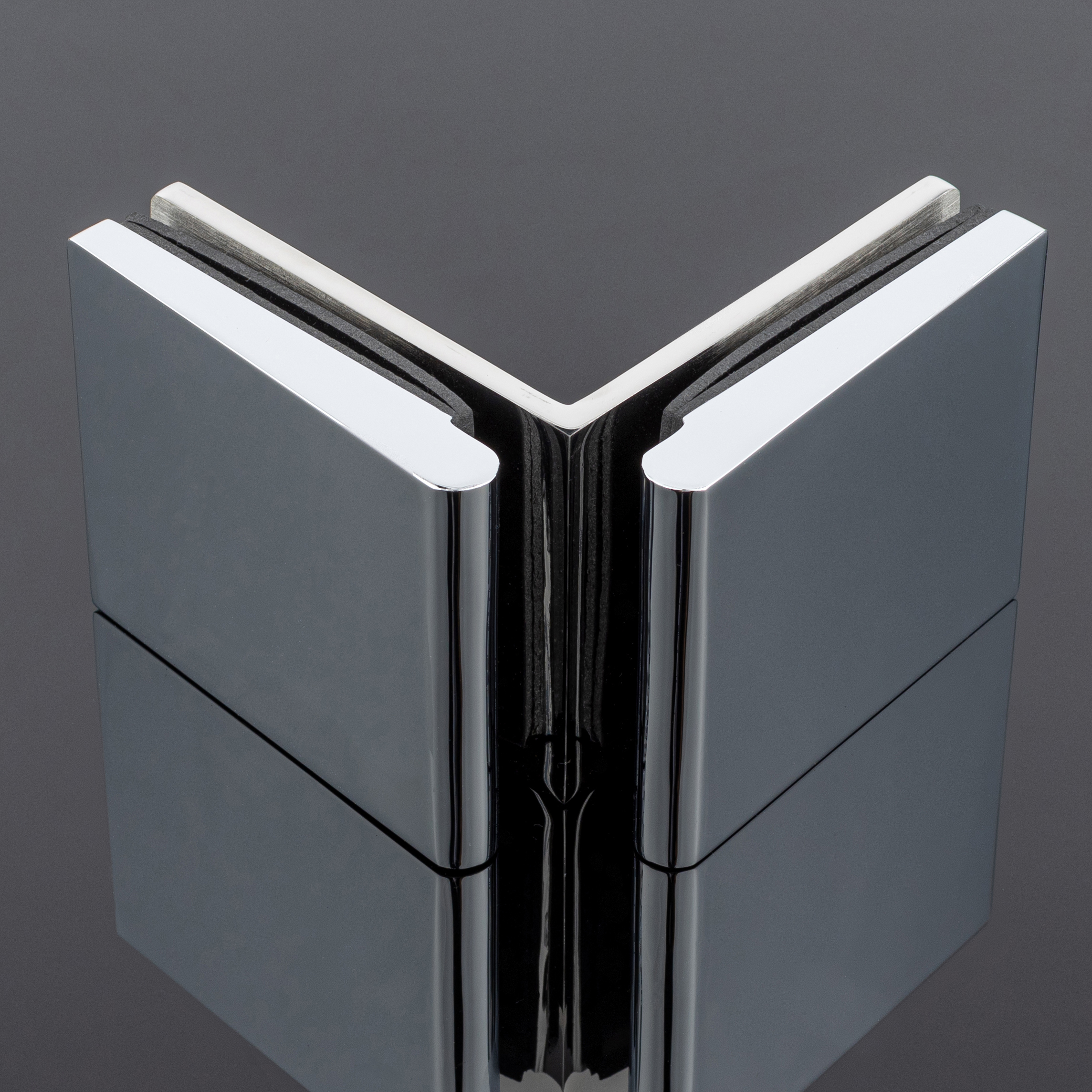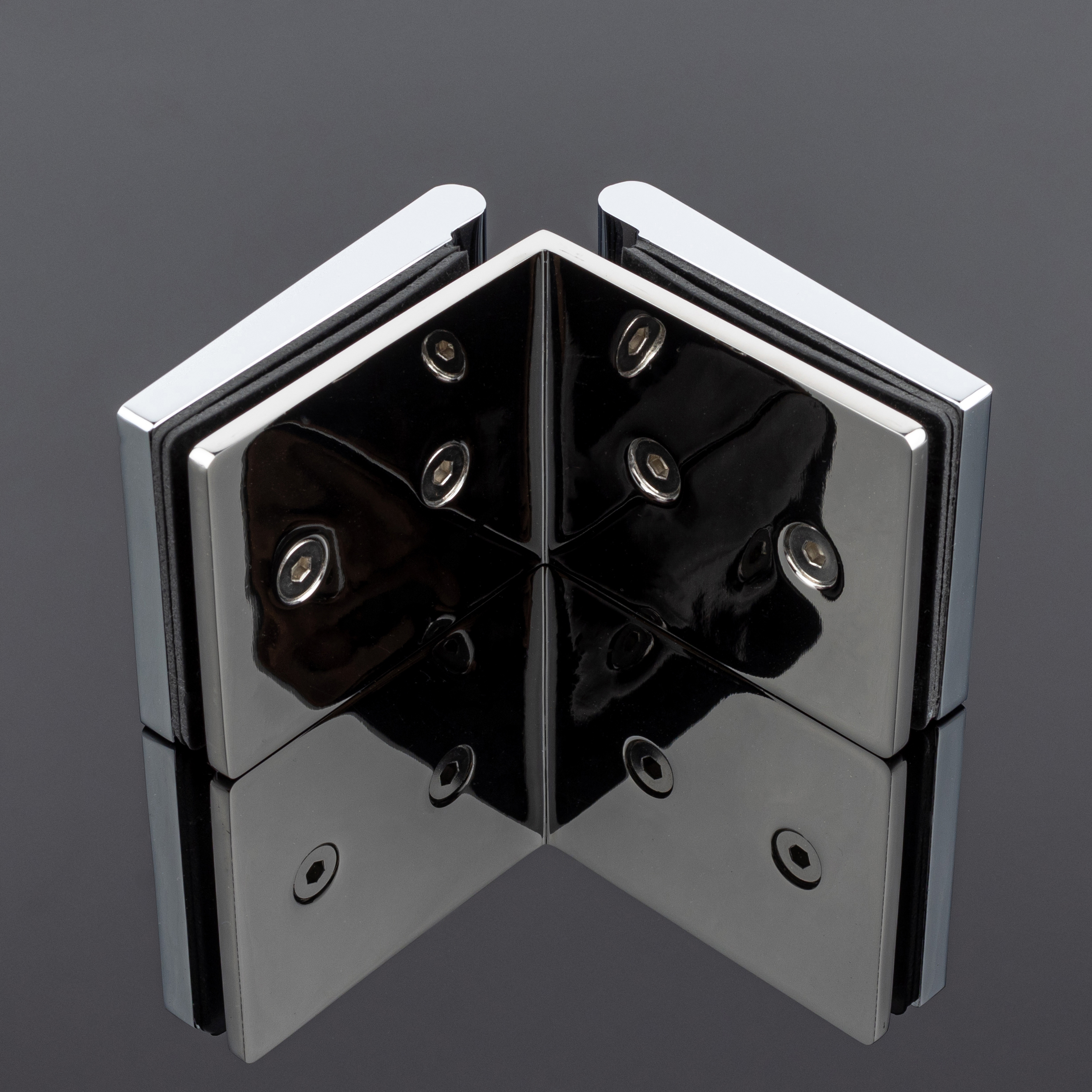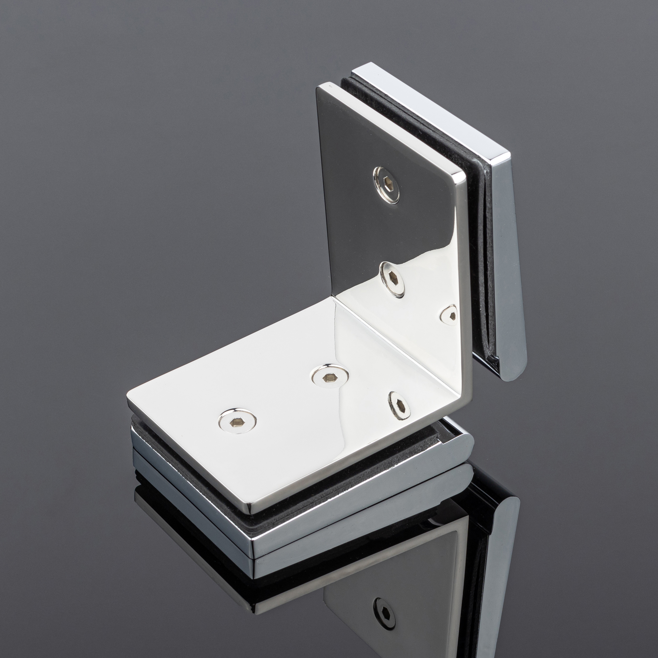 Коннектор стекло-стекло 90°, хром, латунь