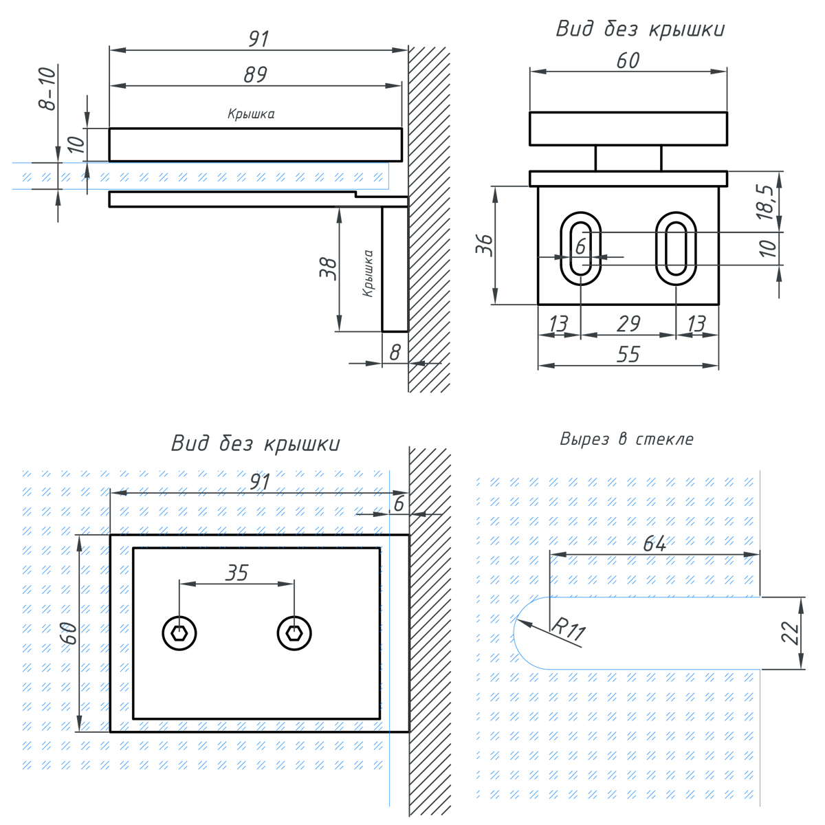 Коннектор стекло-стена, хром, sus304