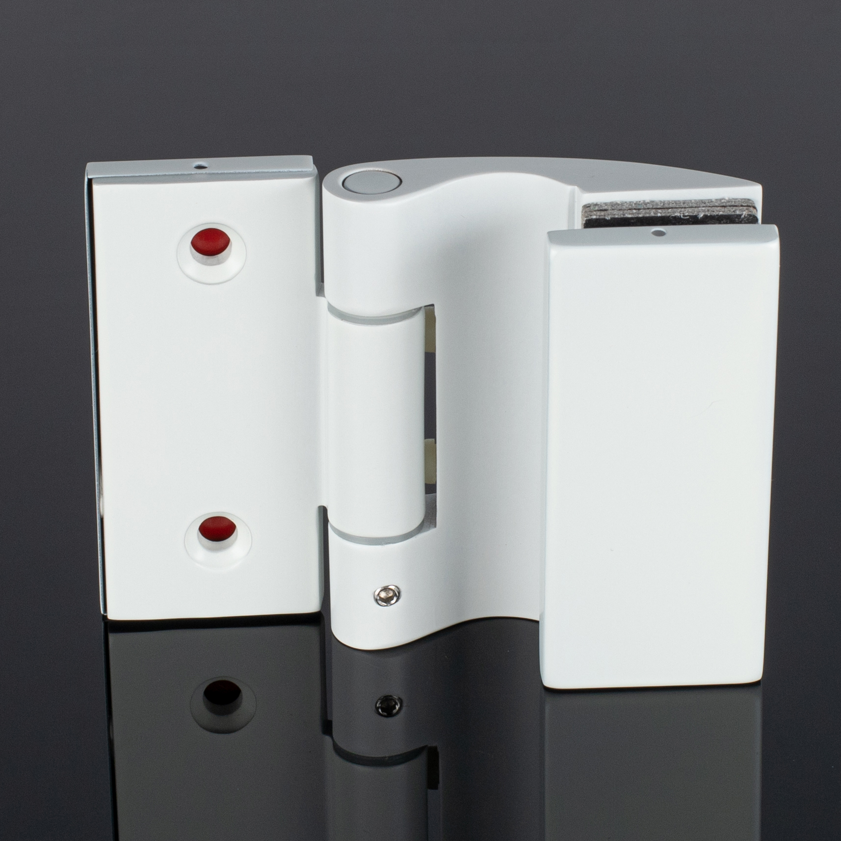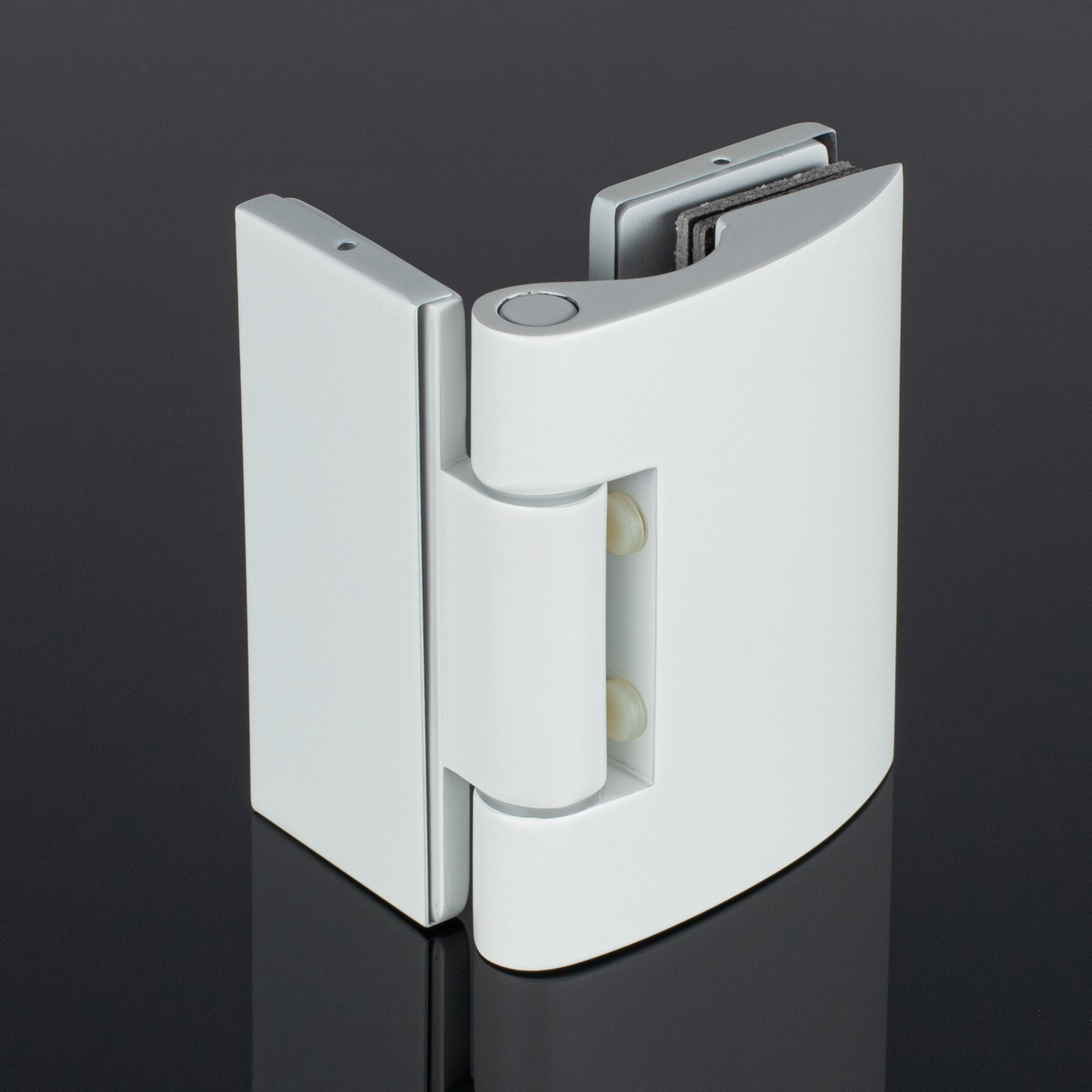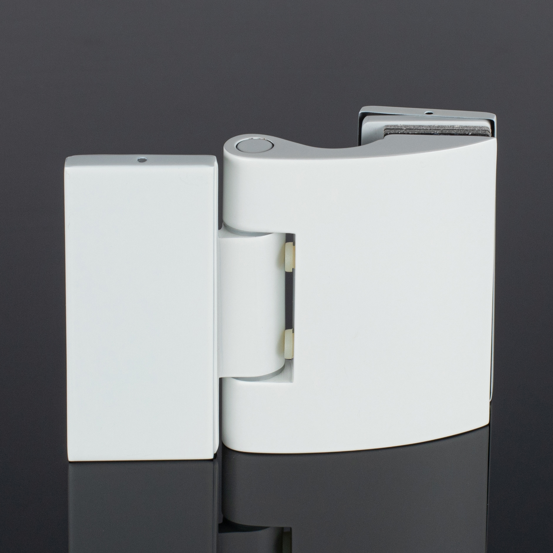 Эстетичный и элегантный дизайн. Петля имеет минималистичную форму, которая не нарушает гармонии стеклянной конструкции. Цвет Белый глянец добавляет изысканности и теплоты интерьеру ванной комнаты.
